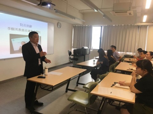 在同學懷著雀躍的心情之下,首先,由大學教務長兼教育學院院長李樹英博士向與會的研究生勉勵,包括:新生要儘快適應澳門的生活節奏、生活習慣;教育學院的授課語言是以中文為主,英文為輔。在學好中文的同時,也要努力學好英文;對於教育學碩士兩年/博士三年的課程學習安排以及論文時間進度的安排,也應該多去圖書館學習;對學習要保持一顆好奇心,有好奇心才能做好研究;“研究”非常重要,應該有選擇性的看書,要積極的投稿;不要“為論文而論文”,要利用好學術資源;主動學習、自主學習,並冀望大家儘早適應澳門當地文化及教育制度等不同之處,並探索出自己的研究方向。