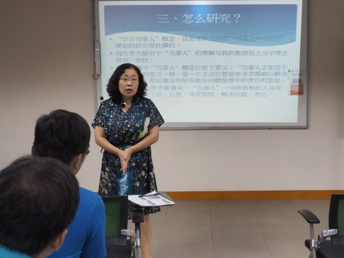 Throughout the lecture, Prof. Jin Meifu mainly from three aspects communicated with everyone presented--- the content, the reason, and how to research "Method of Learning Client's Self Certification". And emphatically introduced the "Self Feedback Report Method according to teaching and learning", which constituted the philosophical basis and principle of epistemology. Prof. Jin said, the topic “Method of Learning Client's Self Certification”is a research topic to get the evidence of “learning client” is learning. The research result of this topic is "Self Feedback Report Method according to teaching and learning". After the speech, postgraduates showed they have benefited greatly, deepened understanding from it and how to research the topic detailed and some methods. Prof. Jin devoted her life to research Husserl Phenomenology and teacher’s education. In the final Q&A session, Prof. Jin not only answered all their questions in detail and exhorted students to choose research direction prudently by her experience. When we choose one, we must stick to academic ideas and take the root of knowledge, view the topic selection as our mission.