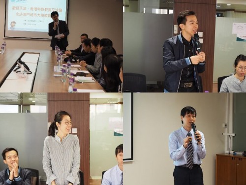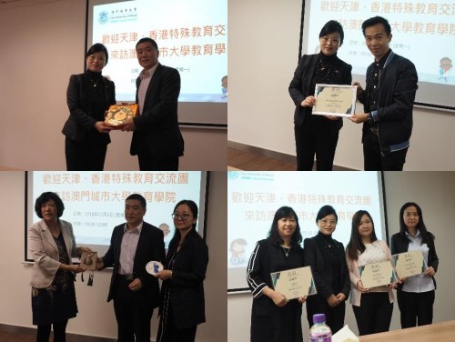 上午,專家交流團在教育學院碩博課程主任李嵩義博士的帶領下參觀了我校校園環境及設施。其後,我校李樹英教務長兼教育學院院長代表澳城大致辭,並對專家交流團表示熱烈的歡迎。接著,天津、香港及澳門地區之特殊教育專家們均介紹和分享了各自地區的特殊教育發展現狀及未來規劃,各方都在交流和分享中獲益良多。最後,在教育學院碩博課程主任李嵩義博士的帶領下,專家交流團及澳城大教育學院研究生參觀了澳門明愛學校,並受到了明愛學校全體教職工的熱情接待。