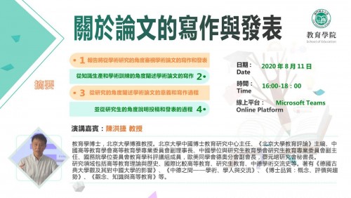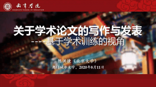 2020年8月11日下午,澳門城市大學教育學院邀請了北京大學陳洪捷教授作了題為《關於論文的寫作與發表》的線上主題講座。本次講座由教育學院孫璥博士主持,參與本次講座的還有我院的博碩士研究生等。