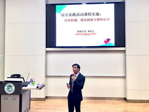 講座開始之前,澳門城市大學教育學院課程主任彭俊博士向聽眾介紹了李臣教授,很好地調動了同學們的積極性。隨後開始了李臣教授的演講,他首先向聽眾分享了綜合實踐活動的概念和總目標;接著,李教授介紹了2017年教育部正式頒發《綜合實踐活動課程指導摘要》為綜合實踐活動課程實施帶來新的歷史機遇以及中小學綜合實踐活動的4類活動方式和152個主題;此外,李教授提出了伴隨研學旅行、STEM教育、勞動教育等教育政策的大力推行,綜合實踐活動課程實施呈現出被稀釋、被忘卻、被轉化的困境。