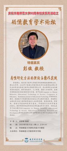 應華南師範大學教育科學學院邀請,5月31日上午,我院課程主任彭俊博士為華南師範大學教育學院近50名碩士研究生作題為《質性研究方法的理論與實踐》的學術報告。