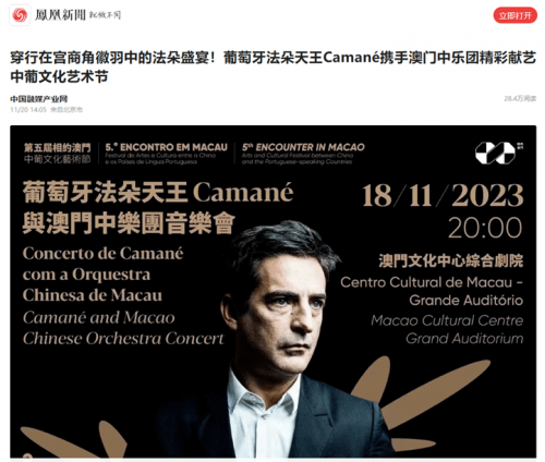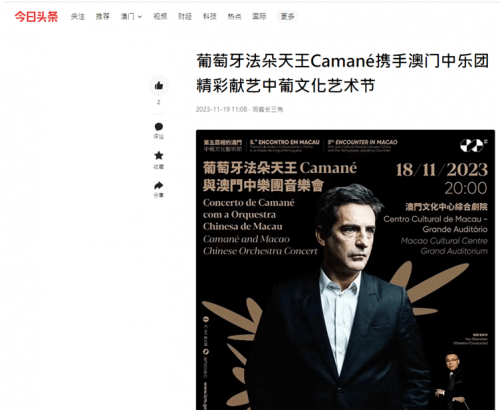 近日,澳門城市大學教育學院2023級教育學博士研究生劉沙路的音樂評論文章《穿行在宮商角徵羽的法朵盛宴!葡萄牙「法朵」天王Camané攜手澳門中樂團精彩獻藝中葡文化藝術節》一文,被具有海內外廣泛影響力的國家級門戶媒體「中華網」全文刊載,同時也被知名主流媒體「鳳凰網」與「今日頭條」平台同步發布。該文章以其獨特的視角和深入分析,引起了廣泛的關注和讚譽。